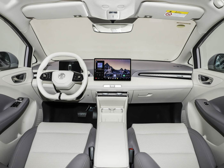 车内自然也是典型的新能源车风格了,整体非常简约、清爽,虽然谈不上太多的豪华感和高级感,但肯定远超它的价格。具体来看,液晶仪表和大屏都没有缺席,不过后者根据版本的不同,拥有10.25英寸(720P分辨率)、12.8英寸(1080P分辨率)、15.6英寸(2.5K分辨率)三种。车机芯片则为8155,虽然不是目前最新的,但这个价格你也不能多要求什么了。此外,新车还有MG×OPPO智行车机互联系统,国产车在这一块的功能不用担心。